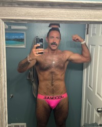 sweet hairy chest... hot abs...love the pink jock.... yup sexy man